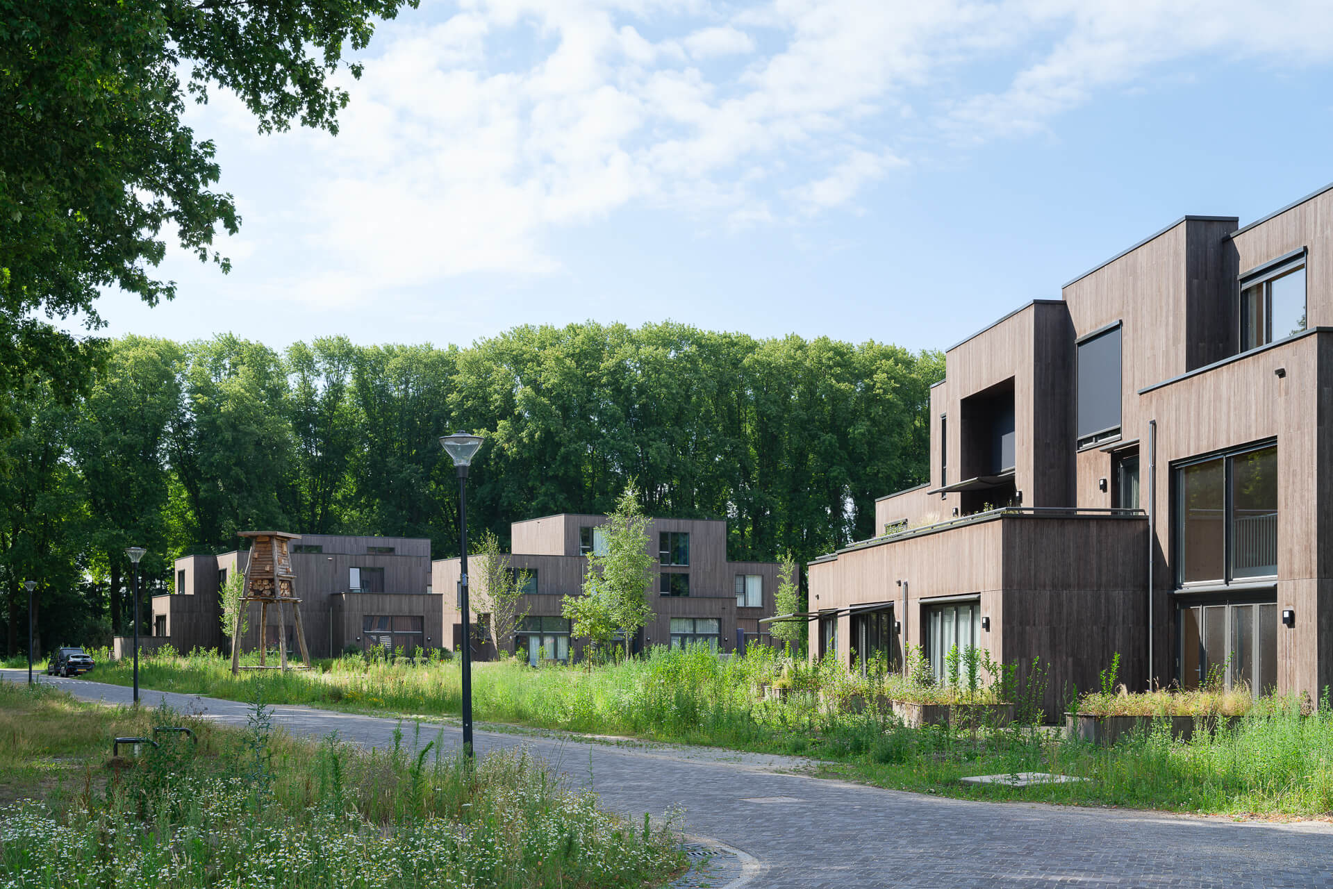 Conceived as a circular ecosystem, Zuiver Bosrijk proposes a radical alternative to a conventional Dutch residential neighbourhood. Located in green surrounds on the outskirts of Eindhoven, Zuiver – meaning pure in Dutch – builds a natural living environment on a 1.2-ha site for a sustainable community. The 32 unique residences are designed with freedom in mind. The project follows the highest standards for circular building, centring on closed energy and water systems, upcycled/recycled materials and strengthening biodiversity.