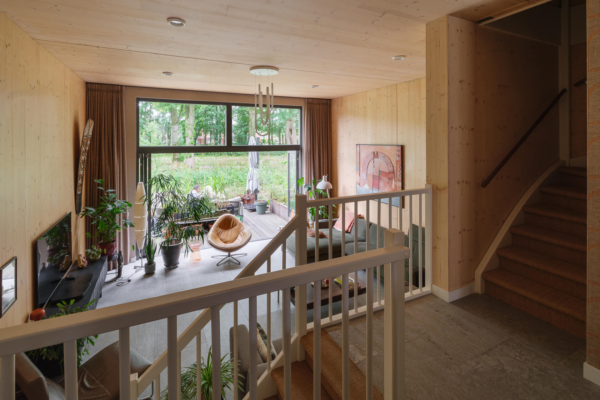 Zuiver’s living concept integrates the entire scope of circular design from the social to ecological. Residents are engaged from the outset to help shape the building and its shared spaces, forming a strong community even before they even start living there. Communal spaces such as the greenhouse and outdoor (play) areas invite residents to connect. As healthy buildings, they are built with a timber structure, recycled timber facades that age beautifully – sourced locally via a materials recycling platform called Oogstkaart – and sustainable materials such as Accoya wood, wood fibre insulation panels and insulation from flax, wool and recycled textile. All houses are designed according to passive design principles, where for example all receive a daily minimum of two hours sunlight for warmth and wellbeing. Together with their low energy requirements and 20m2 solar panels per house, this will help realise Zuiver’s ambition to become an energy-neutral or -positive development.