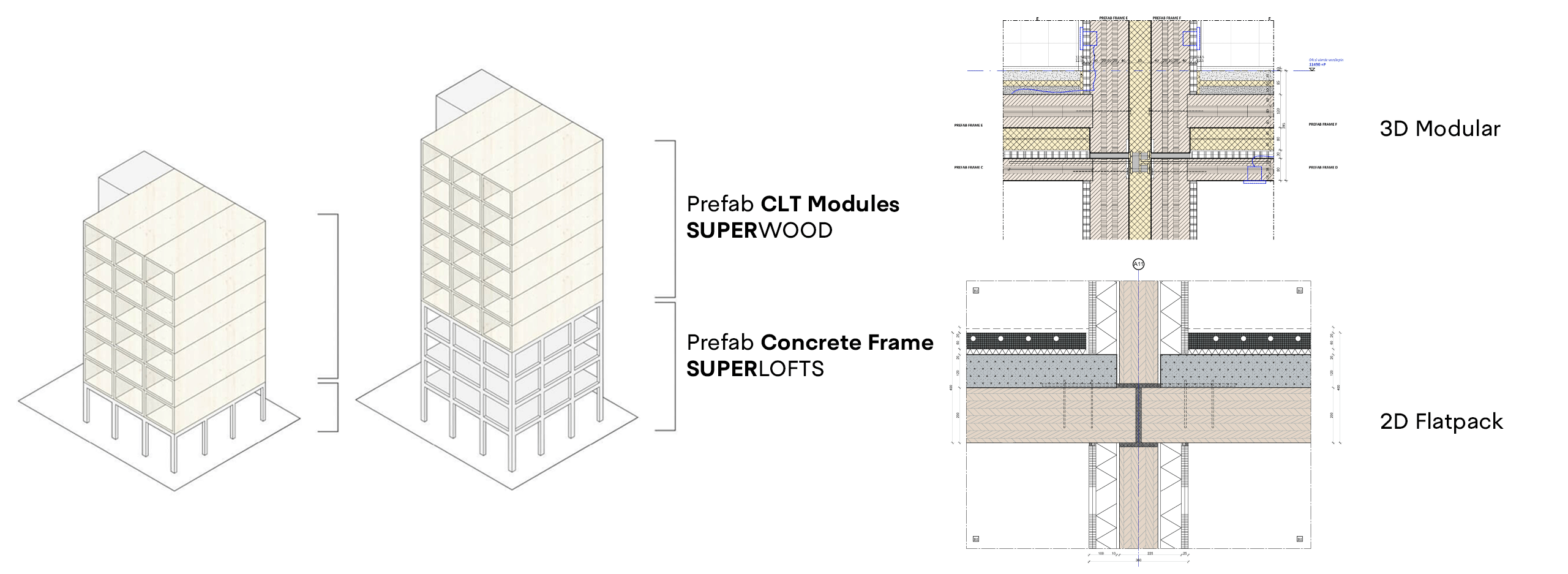 Superwood allows developers to easily create the ideal economic mix of apartment types and layouts by using a library of modular building units and buildings.