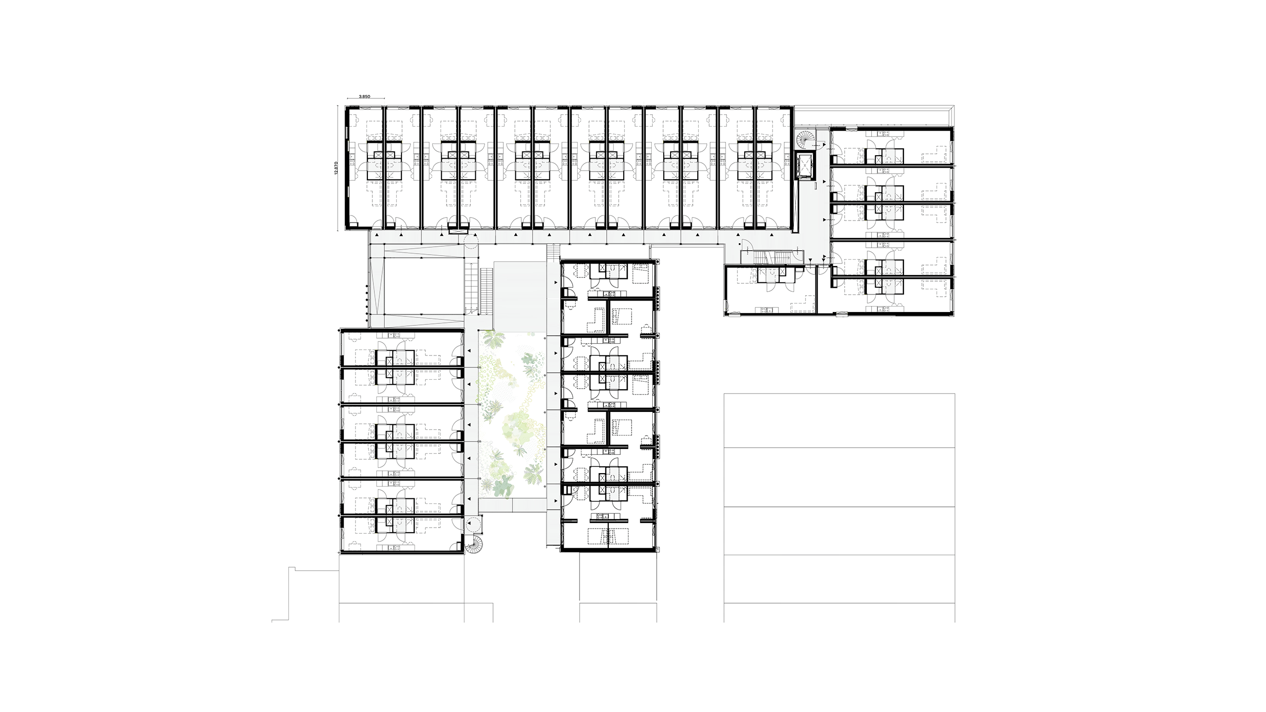 The 4m x 12.8m up to 15m long prefab modules are entirely prefabricated off-site in cross laminated timber (CLT). Units can be modified and united into larger apartments by infill metal stud walls. This allows for a future proof open building approach by making the building components demountable and adaptable over time.